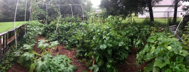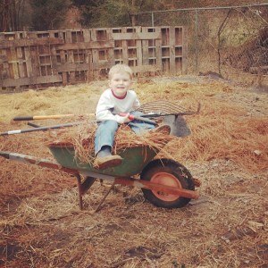 Last year, heavy with child, my nesting instinct couldn’t resist gardening, despite all sense. However, I was a year smarter and a lot more motivated to do the least amount of work. So, we moved the garden plot closer to the house, laid down rolls of landscaping fabric to ward off the weeds, and planted too much for a pregnant lady with two small children to keep up with. We got a good enough harvest before the weeds took over, but there had to be a better way.